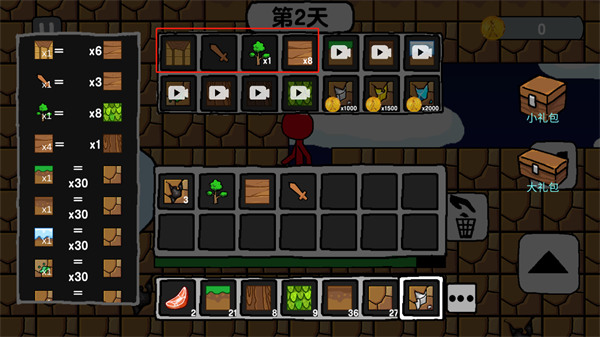 6、游戏中上方的方框是可以制作的道具,下方是玩家的背包。