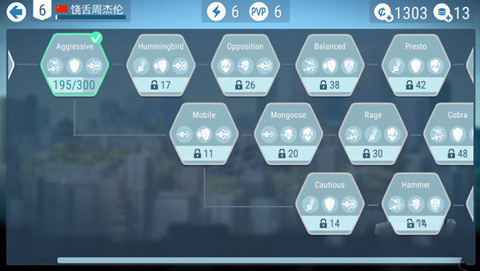 而技能则需要在比赛中获得熟练度来提升到精通,技能树分为3中风格:攻守兼备(Sword and Shield)、灵敏系(Cobra)和防守系(Porcupine),玩家可以根据自己进攻的风格来选择升级技能树。