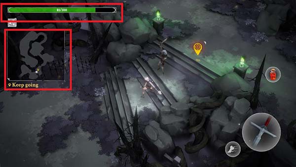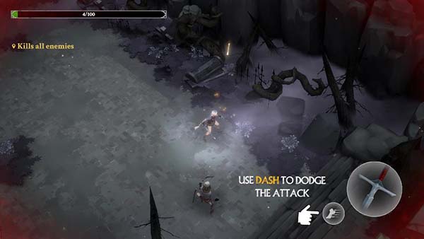 1、进入灵魂猎手地牢官方版游戏后,左手控制角色移动