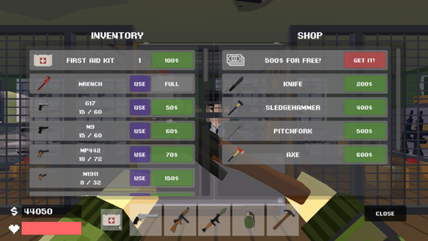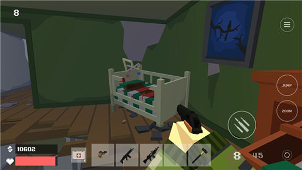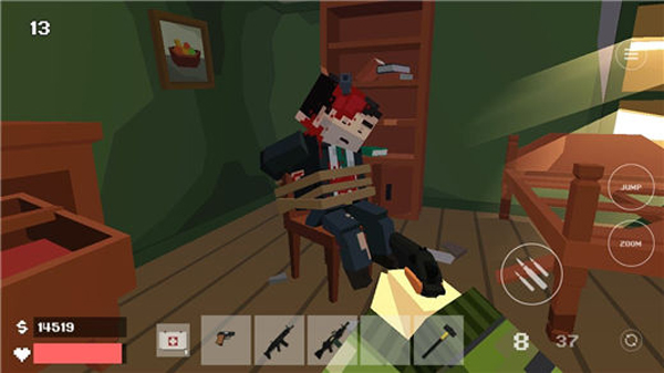 像素战斗僵尸突袭官方正版是一款以末日求生为背景的生存类塔防游戏,该游戏所采用的是第一人称视角,其次配以简单的画面,精巧的图案,易上手的操作玩法,丰富的细节,弹壳掉落,武器细节,枪声,换弹动作,近战敲在墙壁的声音,都很有代入感,即时对于菜鸟级别的玩家也能轻松驾驭,期间玩家将在规定的房间内阻击僵尸来袭。此外,在像素战斗僵尸突袭中还配备了一个超威猛的军火弹药库,里面含有大量的武器装备,在玩家的背包栏里,除了医药包的固定之外,同时还可以装备五种不同属性的枪械弹药,近距离手枪,散弹枪、远距离步枪,阻击枪、范围性炸药手雷,火箭筒以及其他近战类的武器斧头和扳手,玩家可自行挑选和使用。