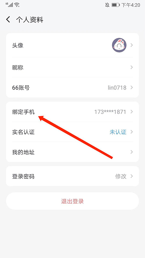 3、进入【个人资料】界面,选择【绑定手机号】选项,