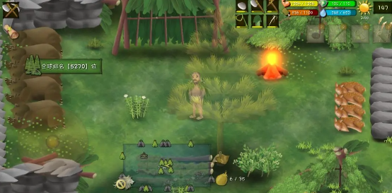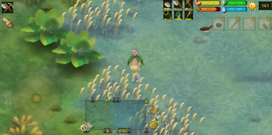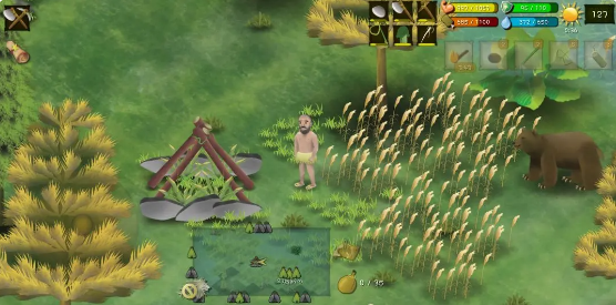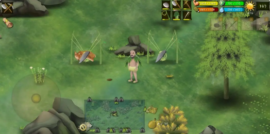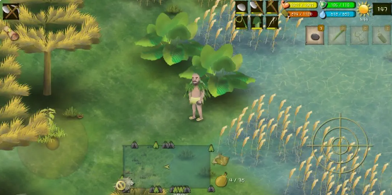 游戏中有不少投掷类工具,石头,竹叉,弓箭。有时候你会碰到一些猎物,如草原上的兔子,池塘里的鱼。你需要用你的投掷工具瞄准猎物进行猎杀,当然不同的猎物需要不同的投掷工具。