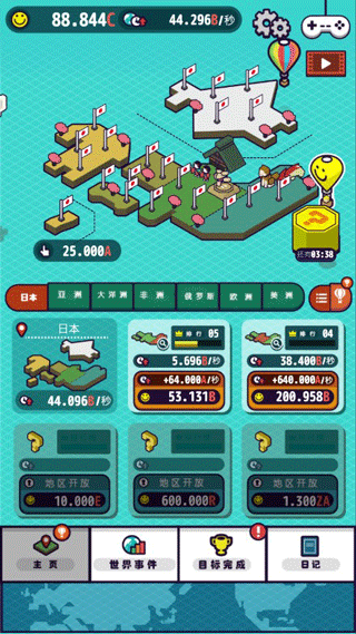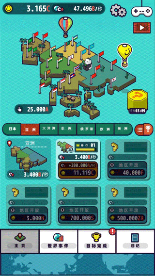流行世界是一款日系卡通风格的像素模拟轻触点控式游戏,清新简约的设计画风,充满趣味的休闲玩法为游戏营造了更多的趣味色彩,在这里玩家将通过驾驶热气球参与到全世界的旅途当中,并在当地区域收集“微笑”,借此将收集上来的“微笑”用来解锁新的区域,从中你将会游览到当地著名的美食和这个地区独具特色的动植物,也许你并没有出过国,也许你也想知道这个世界有关其他地区有趣的故事,那么这款游戏就是为你准备的,游戏过程休闲且治愈,致力带给一个不一样的世界巡航冒险乐趣。此外,在流行世界中还设置了众多任务目标,完成目标任务能够获取大量的微笑奖励,利用足够的微笑能开启世界各地的新鲜事,期间你所遇到的和遭遇到的都将被记录在这个游戏日记当中,喜欢的朋友就来下载去体验世界各地不同的事和物吧。