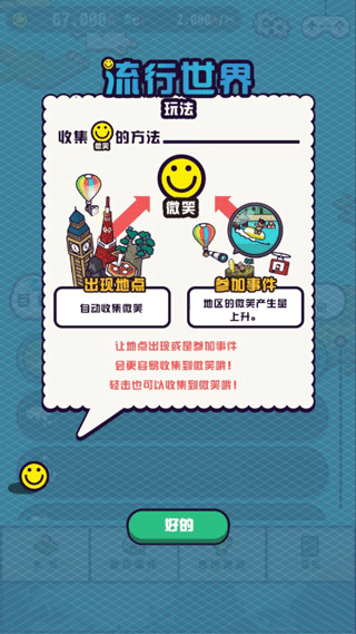 首先让我们在“地区”收集微笑,获取微笑的方式可以通过点击屏幕或从景点中收集微笑。