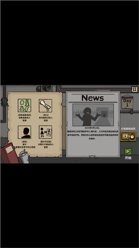3、玩家在游戏中要仔细观察来到庇护所的所有人,准确查找到不对劲的人才能完成目标开始下一关。