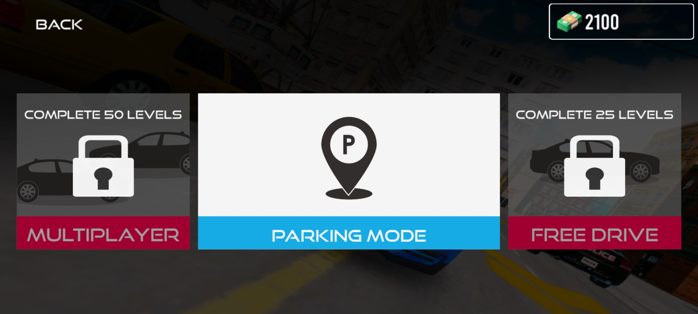 2、多人模式完成50级,停车模式。自由模式完成25级,目前我们是小白段位,选择中间的停车模式