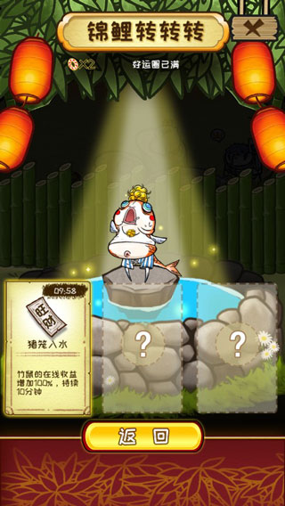 此外,游戏中除了需要进行竹鼠合成繁殖以外,还具备转锦鲤功能让你时来运转。