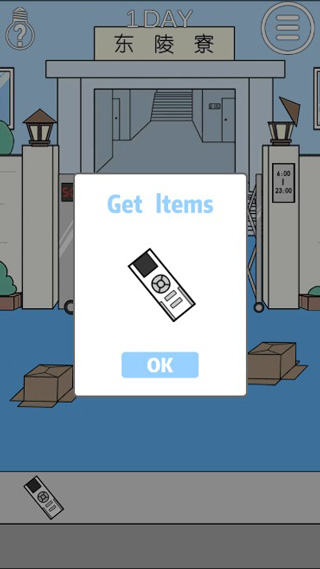 第十五关:从油漆桶后找到抹刀,刮下书上的胶,涂在椅子上,多次点击宿管大爷的脚,等他掉下来就拿遥控器进去;