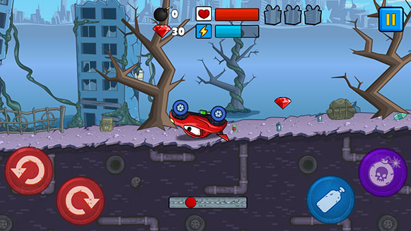 2、汽车速度过快会导致翻车,此时点击左下角红色按钮来恢复正常行驶状态。