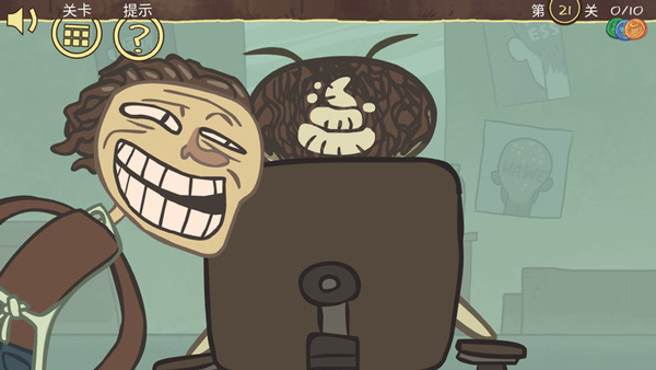 第二十一关:理发,首先我们点击椅子,然后右面的人物就会坐上去,然后从头下依次的到上长按理发机,最后会出现一坨耙耙,然后就会通关了;
