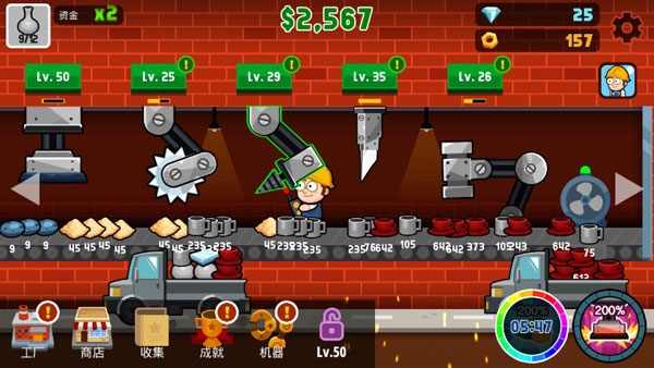 升级工厂:工厂升级能带动资金收入的增长和锤子威力的增加。