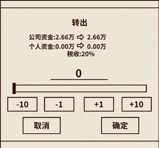 5、关于公司的转入转出功能,转入可以将自己的个人资金注入到公司内部,加速公司的营业发展,对于转出可以将公司内部资金转入到个人账户,以便缴纳医疗保险。