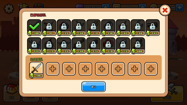 1、进入游戏之后,界面上有很多兵种,灰色的是未解锁的,解锁兵种需要花费金币或者是钻石,金币可以通过普通关卡获得,钻石可以通过无尽关卡获得。