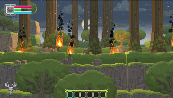 鹿神传说(TheDeerGod)是独立游戏工作室PiwotGames制作发行的一款动作冒险解谜游戏,游戏中拥有无比华丽的像素内容,而且画面构成显得极具深度,加入了夜与昼交互变化和游戏系统,你能通过冒险在作品中明显的感受到周围的环境变化。游戏中讲述的是关于主角由于受到惩罚变成了一只鹿,为变回人类你将要克服其他动物刁难,解决路途中遇到困难,凭借灵活的跳跃和一些补给奋勇直前,直至最终见到所谓的鹿神。旅途中玩家需要用自己的智慧和魔力解决一路上出现的一系列谜题,与其他野生动物战斗,甚至与迷人的母鹿相爱并且生下小鹿,这些小鹿会一直跟着玩家直到他们觉得无聊或者玩家阵亡,当然死了之后又会转生到这些小鹿身上,一代接一代生生不息。