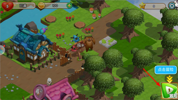 1、打开熊出没之熊大爱闯关游戏,进入游戏主页,玩家根据提示开启冒险之旅;