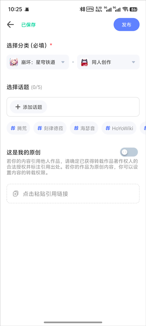 4、输入好后点击下一步,选择分类和话题,再点击右上角发布即可;