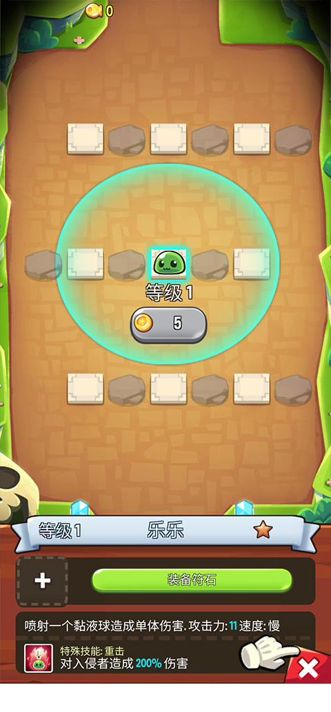 当你的怪物积攒到一定程度时,你拥有了攻击和攻速木桩,你也有了像样的攻击手,这个阶段你就发现这个游戏的主要打法是一只怪摆第一排,左右插上木桩就能清掉90%以上的怪。当你的输出手和木桩达到40-60级时,你一般就能顺利通过第一关了。