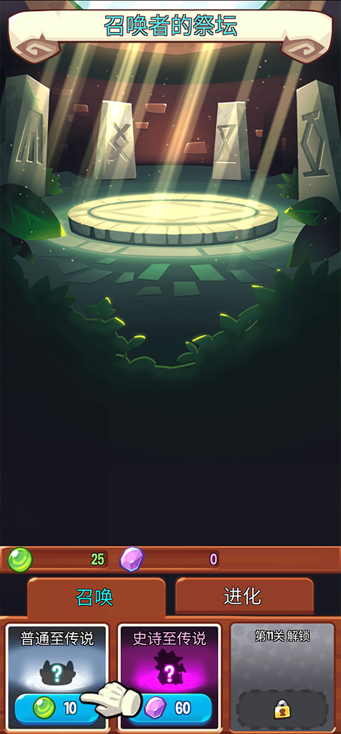 4、召唤珠是一个特殊的存在,得到的方式有四个:第一次通过某一关卡时得到1个;每打过boss时掉落3个;用金币与商人交换(每10金币1个召唤珠,一次上限10个);以及看广告获取。在你打败兽人部落(第二关)前,召唤珠将很稀缺,但当你打过后,你可以挑战联合军关卡,此时的你应该拥有通过前5关以上的实力,即使只能过1到2关,如此往复也将会得到大量召唤珠。