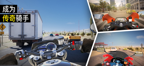 在游戏里,不仅有着无尽模式、限时模式、职业模式三种不同的游戏模式供玩家选择,还采用了非常逼真的3D第一人视角,再加上热血十足的背景音乐和真实的音效,带给玩家非常紧张刺激的游戏体验。游戏拥有着百变的天气环境、仿真的摩托车马达轰鸣声效等元素,致力于为玩家带来最真实的游戏视听盛宴。