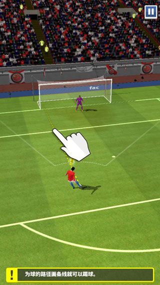 1、一个任意球的模拟场景,你就需要通过周密的计算和倒球,让皮球尽可能地接近对方的禁区。