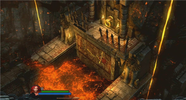 4、双人合作:灵活的劳拉和壮实的托泰克很好地形成互补,劳拉有钩锁、手枪、传奇的身手,而托泰克虽然灵活性较差,但更为强大,装备着盾和矛。这样,在关卡的全程,自然就需要这两个人互补性的合作,例子到处都是。比如劳拉可以爬上托泰克的盾牌到达高处,然后用钩锁将托泰克吊上来。也有的时候,是托泰克不断扔出长矛,为劳拉搭建通往目的地的阶梯。游戏中如果一个角色死了,另一个可以通过牺牲自己的血来复活同伴,但有时间限制。