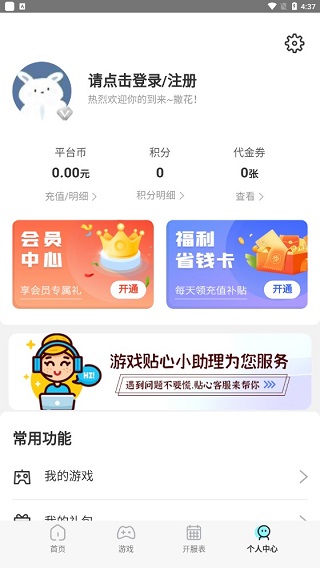 2、在个人中心,有详细的平台币充值,还有几分和代金券。