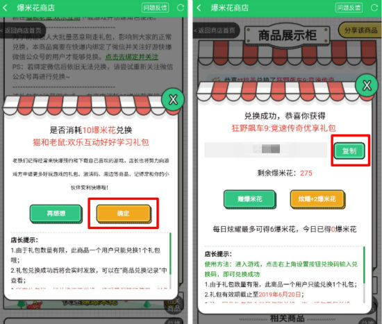 3、分享后点击返回好游快爆,再次点击【兑换】,仔细查看弹窗后选择【确定】,即可兑换成功。兑换成功后点【复制】,就能复制你兑换的礼包码前往游戏内兑换哦。