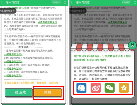 2、点击心仪商品,进入该兑换页面,并点击【兑换】,出现一个分享商品的弹窗,选择你想要分享的方式分享该商品。
