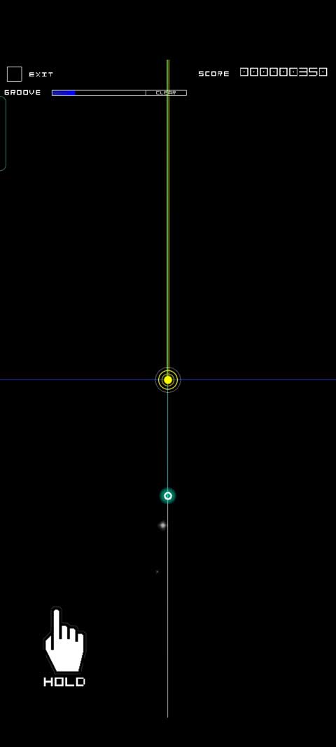4、游戏的玩法非常简单,这个简单的关卡中只有两个音符,一个是点击式,一个是长按式,当遇到白色的圆圈就点击屏幕,当遇到黄色圆圈就长按。