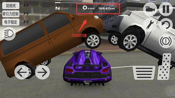 6、屏幕上方还可以赛车时速。