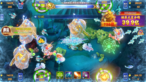 4、可以与好友一起玩的功能:游戏还提供了与好友一起玩的功能,玩家可以邀请好友一起组队捕鱼,共同挑战游戏中的关卡和任务。同时,游戏还设有好友排行榜和社交功能,玩家可以与好友一起分享游戏的乐趣和成就。