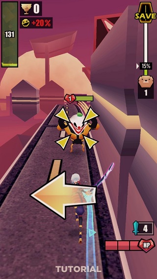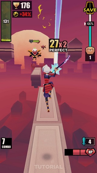 既然这是一款追求极致爽快感的游戏,目前来说是不够的~ 需要加强前期爽快感和刺激感,才有让玩家深入玩下去的动力~ 比如加快一些速度,比如一出门地上有个道具,一吃就加速,此时处于无敌模式,左右划动会砍空气并且加速,有障碍物的话也会全部破坏,效果可以做夸张一点~持续10秒左右。先让用户嗨起来,才能体验到游戏的乐趣。