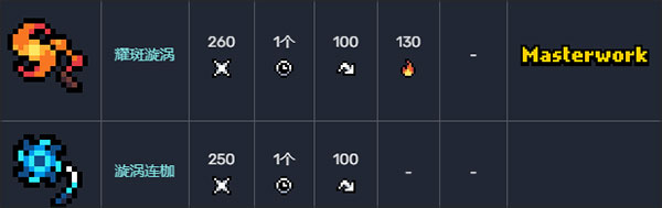 最高的红色和彩色基本就是毕业装备了,红色为神圣装备,属性会非常强大,比如重型武器里的恶魔之剑,剑类里的西风之刃,要么是宝箱获得,要么就是高级锻造,它们的材料收集会更加困难。而彩色装备则是游戏里的最强武器,被称为杰作,基本都是每个种类武器里的天花板,获取方式一般是掉落或者多级融合。