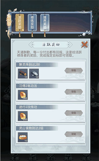 特别注意:前期活动内的修炼奖励、境界奖励送的灵石不要乱用,只买书和日常花销即可,后期的分神阶段需要购买比较强力的分神术和拾物术。