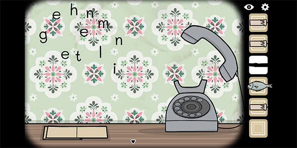 5、再点电话的听筒,左上的字母们就按照前面的英文“enlighten me”顺序点击就好了,会掉下一盒火柴;