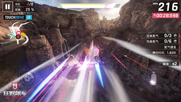 在比赛当中,氮气爆发使用的合理,是能决定比赛成绩的。比如说,赛车在弯道使用氮气爆发,其效果不是很好,最多就撞坏几辆车;还有就是在直线上使用氮气爆发,速度虽说可以突破最大速,到是超出的并不多。
