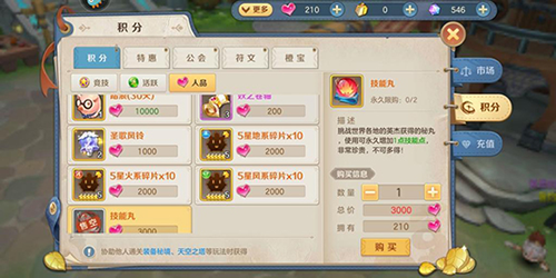 人品积分兑换优先度排序:技能丸>妖之卷轴>风铃