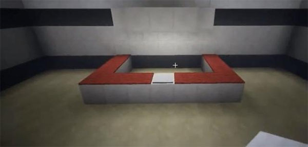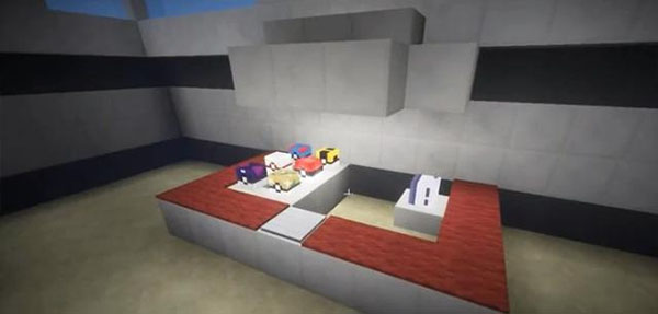 在上面铺上一层红色地毯, 最中间放置一块白色的测重压力板。