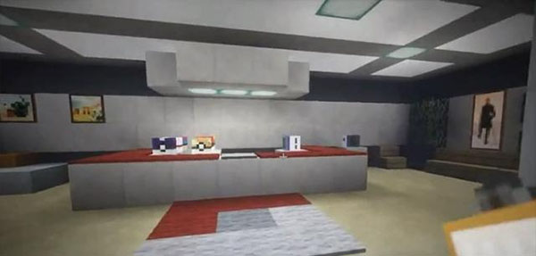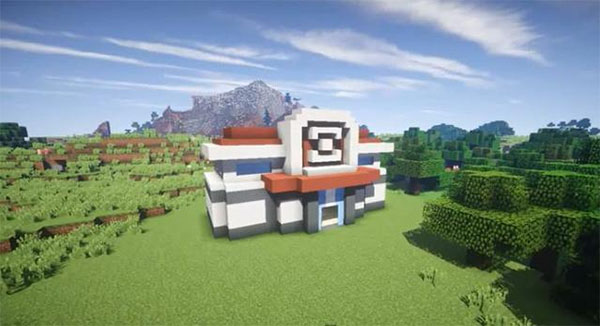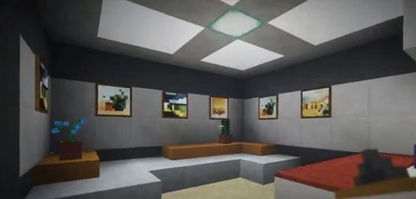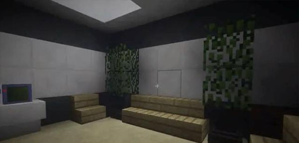 在另一边还要给我们的口袋妖怪玩家做一个电脑, 再用铁砧和橡树树叶做一些绿化, 当然还有凳子 ,可以用桦木楼梯。