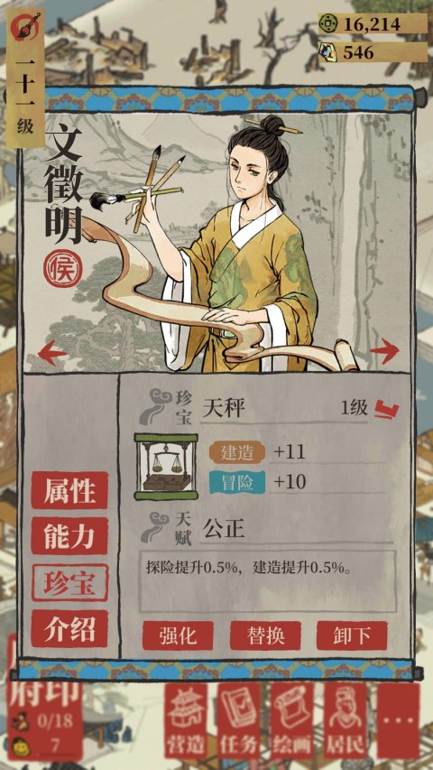 三、是注意人物特殊能力,比如汤显祖在负责理财工作时本金可以减少30%(升级后)、沈万千在探索新区域时花费可以减少4%。而且这项能力能随着人物升级不断提升。