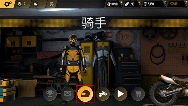 7、点击黄色头盔图标可以为你的骑手进行装饰,你可以自由定义他的工作、头像等。