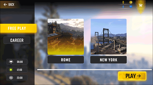 2、在游戏模式中选择并点击“free play”的选项,进入免费模式,在右边可以选择地图,选好后选择并点击“play”的选项即可开启卡车生涯了;
