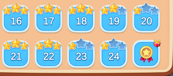 关卡制游戏,每一关消耗一点体力,玩家可以采用不同的道具辅助过关,顺利达到三星。