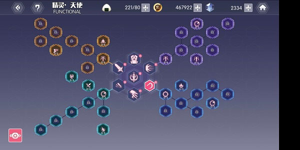 我们的精灵在每次升级之后,都可以获得一点分配在天使上的技能点,总共有四条分支可供玩家选择,分别代表普攻以及精灵的3个主动技能,还有针对各种不同怪物和效果的加成呦~