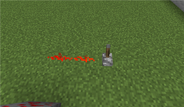 第一个方块为开关,开关有两种状态,一般把手向上为关闭,向下为开启,开启状态下的开关可以为红石线路提供满格的信号。