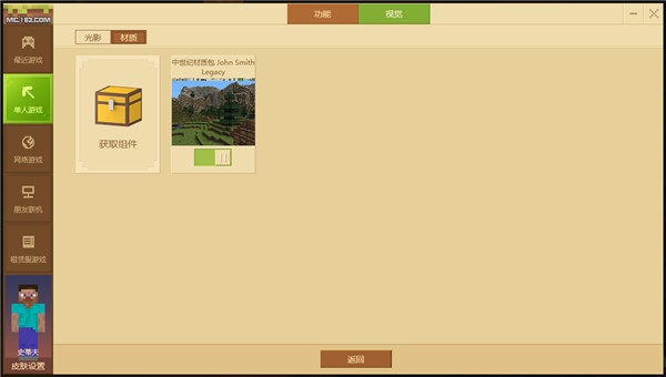 最后,是资源包的介绍,首先我们要是在网易我的世界官方平台选择了材质组件,并且按下了确认,那么在游戏中,默认就会载入这个材质包了。