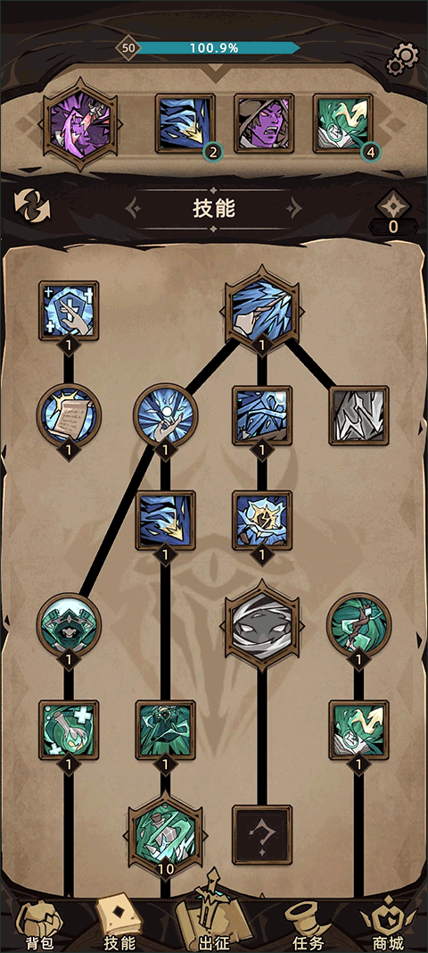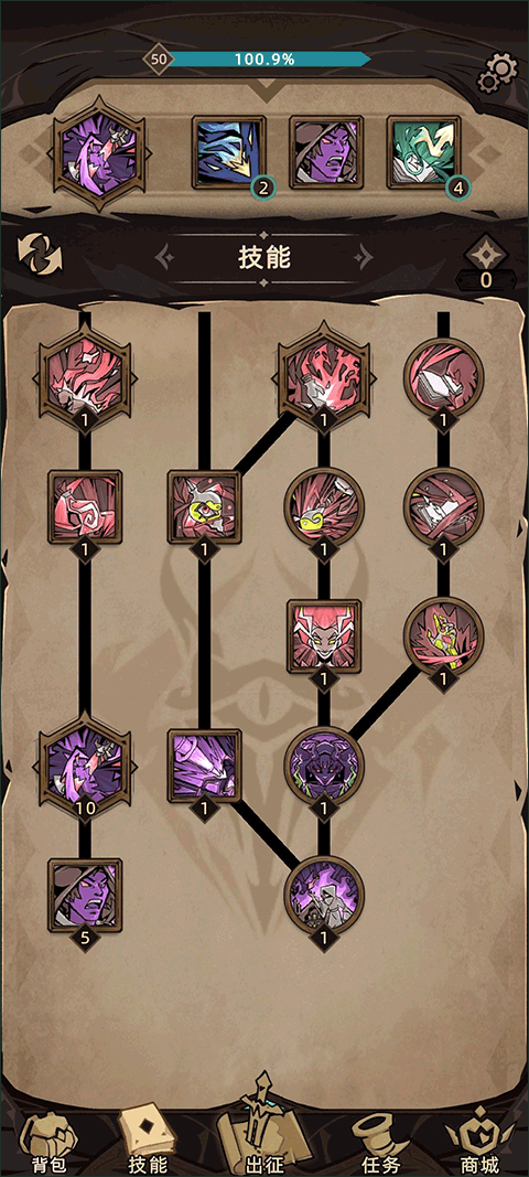 在前作单一角色单一技能树的基础上进行了修改。