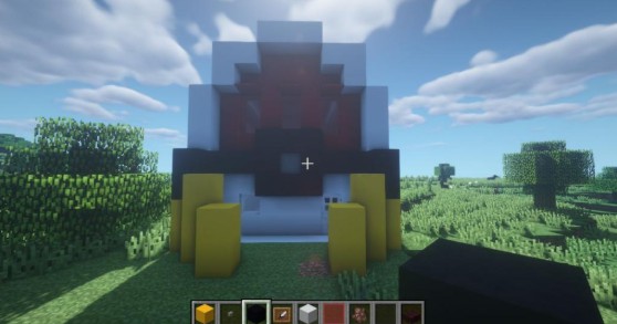 接下来很重要的一点,就是沿着下方图片中的横线放一些黑色的混凝土,中间可以做一个正方形出来,这样远距离观看就有些精灵球的味道啦。