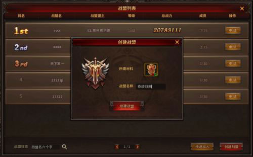 开启战盟系统后,在战盟界面点击[创建战盟],消耗[战盟令]即可拥有属于自己的战盟。