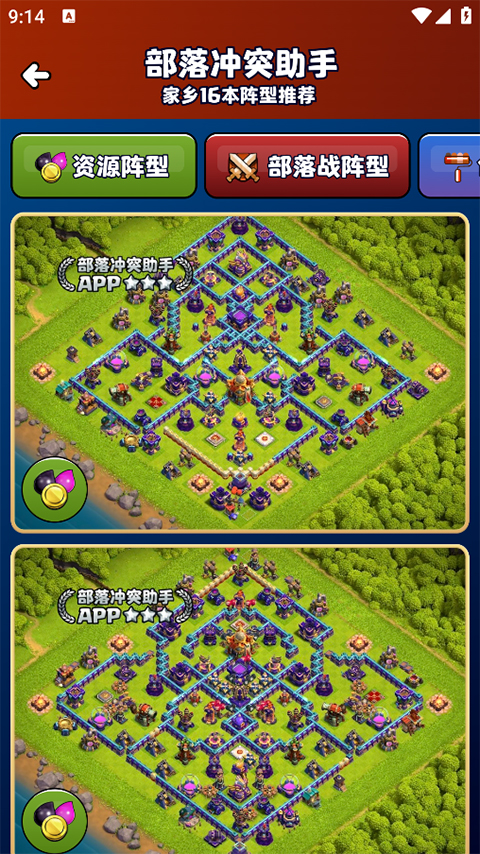 不仅如此,部落冲突助手app官方版提供了超多国服和国际服的阵形供玩家免费复制使用。这些阵形涵盖了护资源、冲杯、部落战、创意、升级等多种类型,满足了玩家在不同场景下的需求。